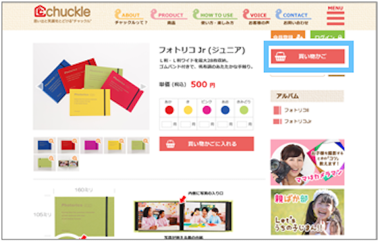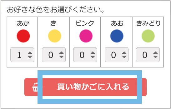 色やサイズが決定したら、[買い物かご]ボタンをクリックしてください。