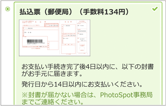 お支払い手続き完了後4日以内に、封筒がお手元に届きます。