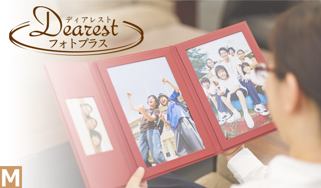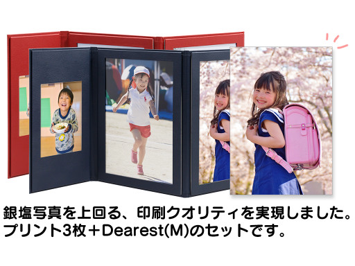 お気に入りの写真は思い切って大きく。飾るフォトアルバムDearest(ディアレスト)に写真をプラス!お手持ちの写真をアップロードするだけで銀塩写真を上回る、印刷クオリティの高画質プリントをセットいたします。八切ワイド(170mm×254mm)2枚とLワイド(91mm×135mm)1枚を収めてお届けします。